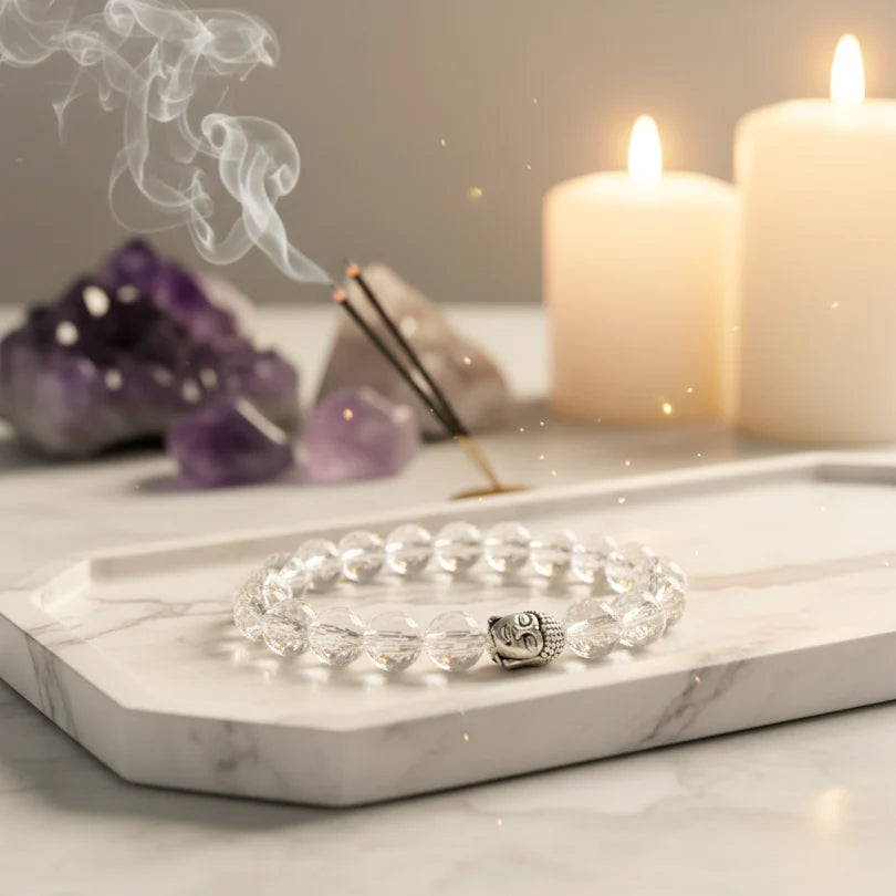 Elevate your energy with the Clear Quartz Bracelet, a master healer crystal renowned for its powerful ability to amplify intentions, enhance mental clarity, and align all chakras. Often called the “Universal Crystal,” Clear Quartz is ideal for those seeking emotional balance, positive energy, and spiritual awakening.
